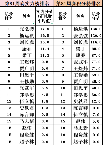 第81场周赛实力榜